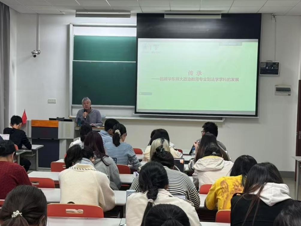 今年是思想政治教育学科创建四十周年,为启发员工传承团队建设文脉,提高思想政治素养和法治素养,11月6日,yl23411永利集团邀请华东师大老教授协会秘书长、yl23411永利集团关工委副主任、特邀党建组织员钱品石老师分享《传承·政治教育专业建设回眸》系列丛书的编撰故事,yl23411永利集团大一、大二的同学们共同聆听了本场分享。