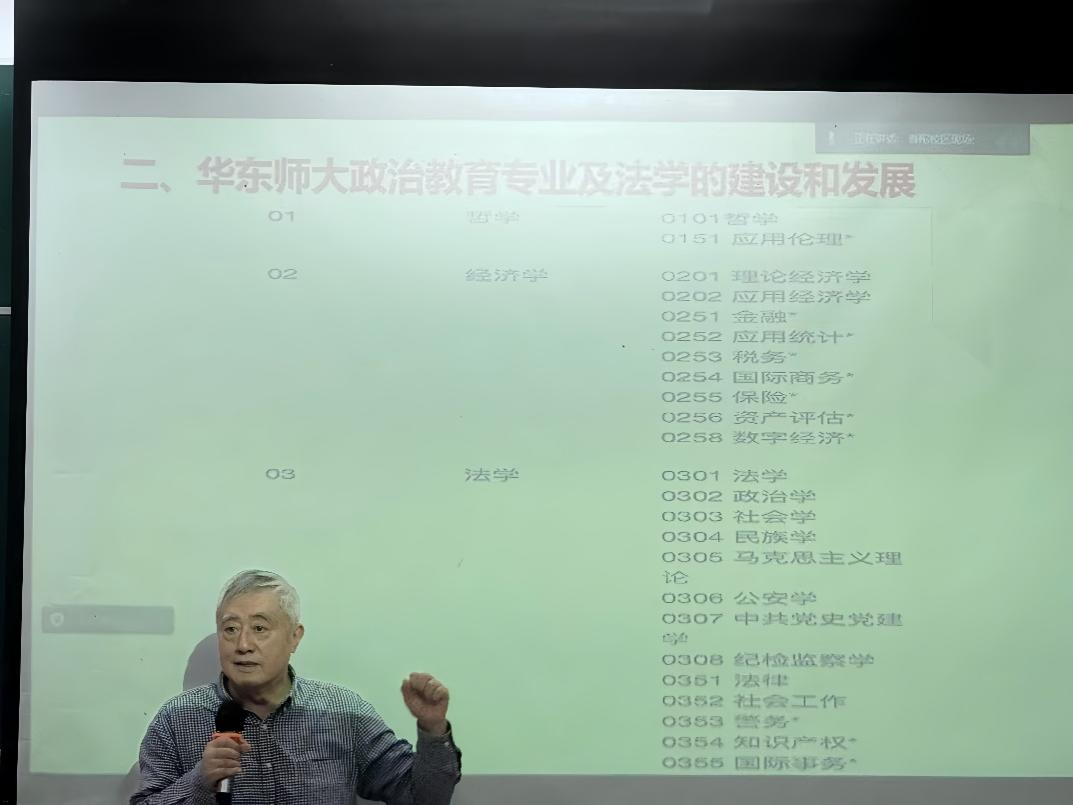 随后,钱老师重点介绍了华东师大政治教育专业及法学学科的建设和发展历程,并分享了团队建设发展中的人和事。它们相互交织、相互促进,共同书写了华东师大在政治教育和法学教育领域的辉煌篇章。