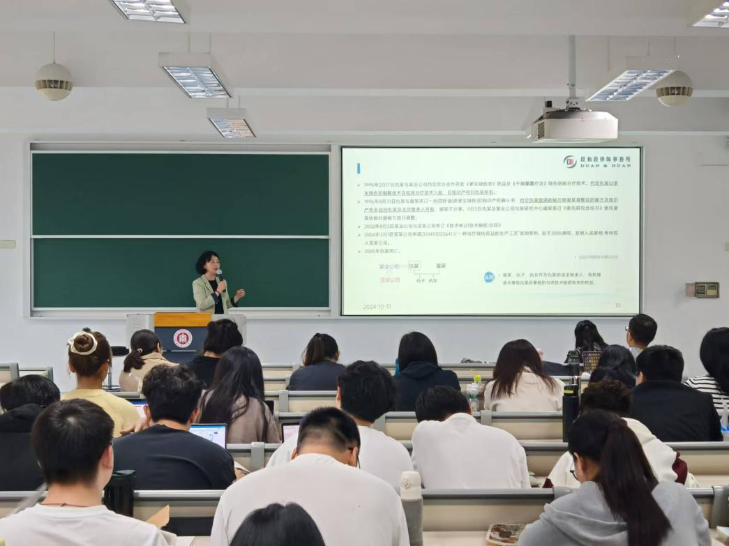 董律师结合实际案例,就涉及自然人知识产权的权利归属、分配、继承等几方面进行探讨。课程中,董律师通过著作权案例来探讨知识产权的人身性权利和财产性权利在继承中的不同;通过商标权案例来探讨在多个继承人情形下商标专用权的不可分割性和特殊性,分别讨论了专利权、技术秘密权益、植物新品种共有权在继承中的特点;还通过数字遗产案例,对游戏账号、装备、虚拟货币、社交媒体账号等网络虚拟财产的继承展开讨论,使同学们了解虚拟财产作为财产权客体的特点。通过深入分析不同类型无形资产在继承中的特点与挑战,为理解和处理无形资产继承问题提供了全面的视角,有助于个人及家族有效管理和传承无形资产,促进长期的可持续发展。