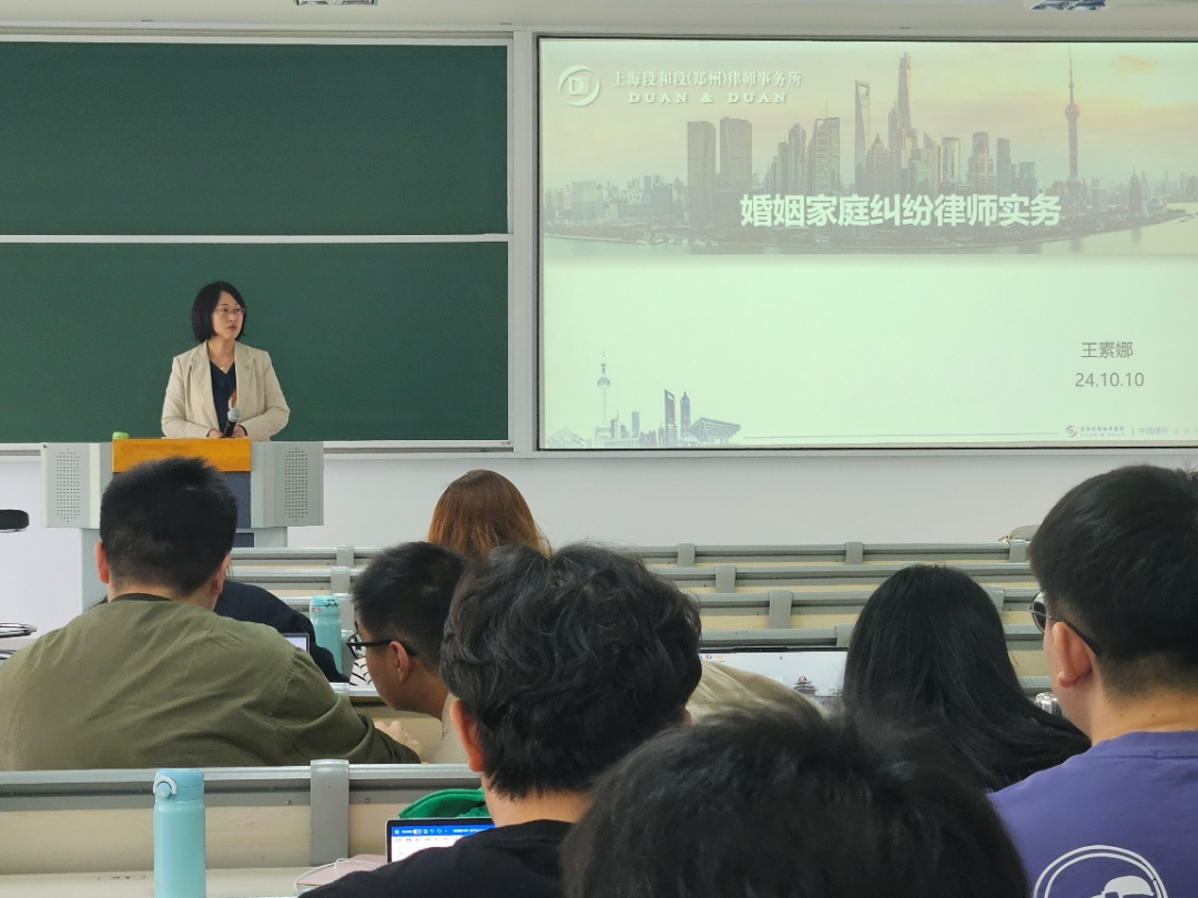 本课程选课人数为100人,选课同学专业包括学硕经济法专业、民商法专业、法本法硕、非法本法硕。专业实践课的特点是将最前沿、最新颖的法律实践和同学们进行交流。段和段律师事务所的授课律师们结合最新的婚姻家事与财富管理法律实务内容,穿插在各个专题的讲授过程中,使同学们开阔视野,了解业内实务动向,初步掌握实务操作思路。对于即将步入社会的法员工来说,专业技术知识与社会经验两者缺一不可。授课律师们在授课过程中结合自身成长经历,一边讲解技能实务,一边交流心灵感悟,将自己总结的社会经验和同学们分享,为同学们树立正确的思想引导、积极的人生观与价值观。课后,授课律师们也积极与同学们交流互动,不仅限于专业学术上的相互探讨,还对职业规划、专业态度、未来展望等问题提供了指导和建议,不仅做同学们知识的传授者,也成为职业生涯的引领者。