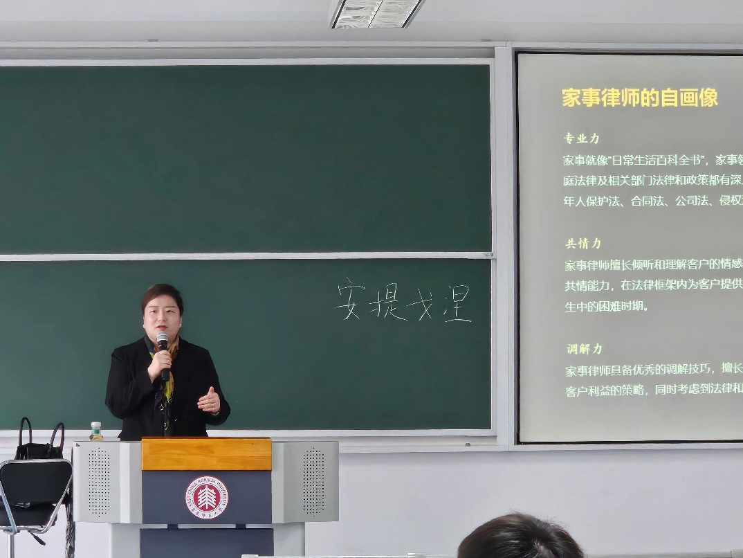 翟律师通过真实的遗产案例,带领同学们深入了解私人财富传承规划服务的完整流程。在传承规划的初期,强调了对家族成员及其利害关系的细致梳理的重要性。接着介绍了如何制作家族成员关系图,核实家族资产并编制财产清单,同时剖析资产传承中可能面临的潜在风险。在此基础上,为客户定制私人财富传承方案,并出具法律意见书或传承规划书。家事律师在这一过程中扮演着至关重要的角色。此外,翟律师详细剖析了在实务中如何订立一份有效的遗嘱,以及如何确保遗嘱能够顺利被执行。她介绍了“遗嘱+”的传承方案,并分享了信托、意定监护等在实践中的适用范例,让同学们对私人财富传承规划有了更深入的理解。