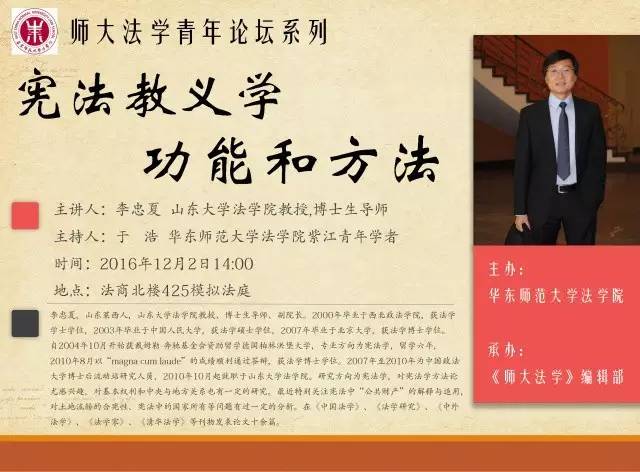 讲座预告 | 宪法教义学功能和方法