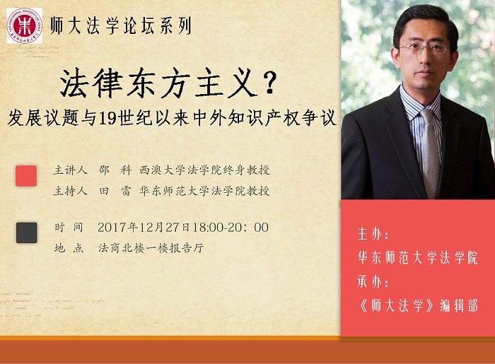 讲座预告|法律东方主义?--发展议题与19世纪以来中外知识产权争议