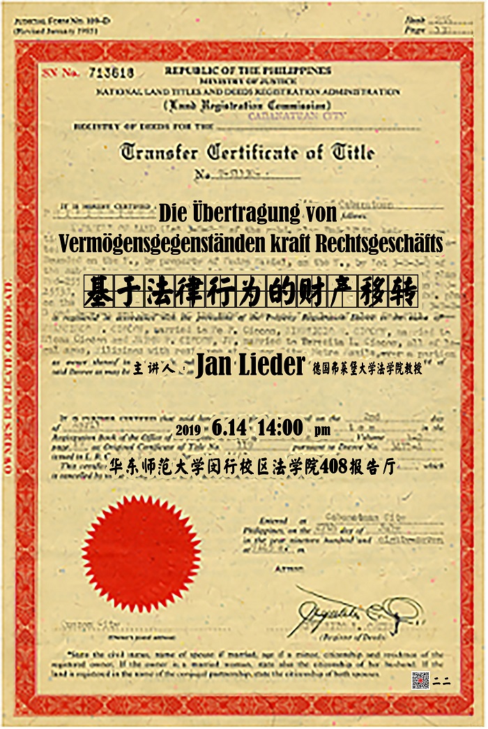 讲座内容简介:基于法律行为的财产转让是民法中最核心的问题之一。Jan Lieder教授将从统合的视角出发,基于对债权让与、债务承担、合同概括继受、动产与不动产转让的统一观察,发掘基于法律行为之财产移转的一般性原理和原则。对此Jan Lieder教授运用了多元的方法论,综合运用法教义学、法律史、比较法和法事实研究的方法,并结合法律经济学提出了立法论上的建议。