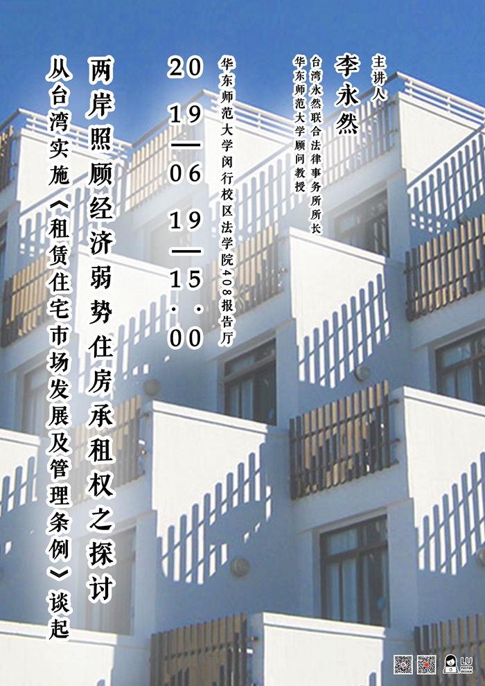 讲座预告 | 两岸照顾经济弱势住房承租权之探讨——从台湾实施《租赁住宅市场发展及管理条例》谈起