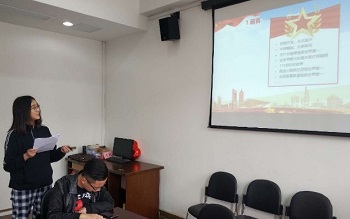随后,17级硕士生党支部的员工党员们分小组,一一上台分享小组观影感受。有的小组用一幅幅图片,重现影片中辉宏画面;有的小组用人物回顾,细说影片中走心的故事;有的小组用收集所得的详实数据和素材,将影片内容做进一步拓展与延伸;更有小组用激情昂扬的诗朗诵《我的祖国》,充分表达了对祖国的热爱之情。