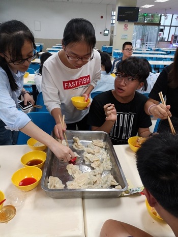 到了吃饺子的环节,热气腾腾的饺子更好的烘托了全场热闹的气氛,同学们的谈话的热情也一下子达到了高潮。虽然大家都没有经过专业的训练和指导,但是一盘盘逐渐被消灭的饺子说明了一切。用爱和热情包出的饺子是世界上最美味的食物。在整个吃饺子的过程中,同学们互相合影,交流,欢笑声和交流声更增添了节日的喜悦。yl23411永利集团的师生在这次活动中相互熟识,也更加珍惜和重视彼此之间的情谊。