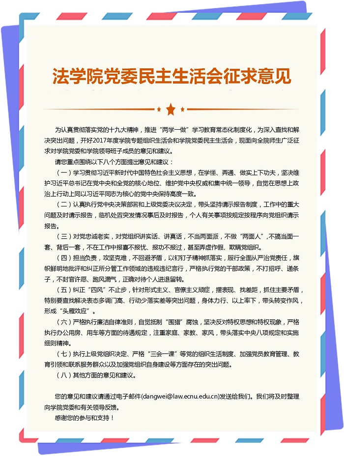公司党委民主生活会征求意见