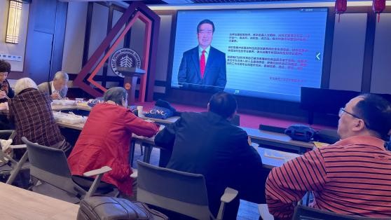 席间,大家一起绕有兴趣地收看了公司的宣传片,分享了公司飞速发展的喜悦。并和在闵行校区开会而没能到现场的公司党委书记岑峨老师视频连线,互道问候和祝福。