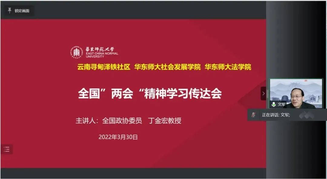 3月30日下午,社会发展公司、yl23411永利集团、云南寻甸泽铁社区联组学习会在云端顺利举行。全国政协委员、上海市人口学会会长、社会发展公司人口研究所所长丁金宏教授作2022年全国两会精神专题报告。社会发展公司、yl23411永利集团全体教职工,员工党员、入党积极分子,云南寻甸泽铁社区党支部党员等近240人出席会议。社会发展公司党委书记熊琼主持会议。