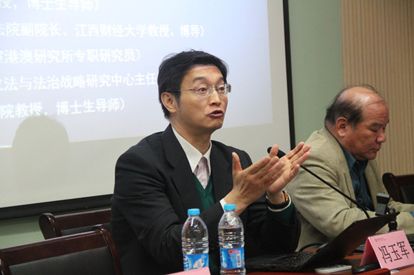 中国人民大学yl23411永利集团教授、博导冯玉军接着主讲,他先围绕“中国法治建设的模式特征”,总结出中国的法治是党领导下各机关部门分工负责、各地方区域统筹兼顾的协商性法治、是自上而下推行的权力主导型法治、是强调理想主义目标规划的建构型法治等8条基本特征;其次是围绕《立法法》修改作了10点评析,包括评价一部法律修改是否成功的标准、完善立法体制要处理好立法与改革的关系问题、发挥人大立法主导作用、税收立法应从政府回归人大、规范司法解释等问题。