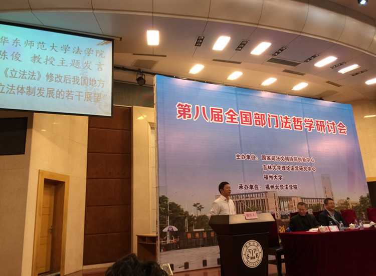 11月26日,陈俊教授走访福州大学yl23411永利集团,调研高校智库建设和福州大学yl23411永利集团参与地方立法建设的做法及课题成果转化的经验,并受邀参加第八届全国部门法哲学研讨会,在旗山校区yl23411永利集团模拟法庭为全国与会代表作了课题阶段性成果《立法法修改后我国地方立法体制发展若干展望》的大会主旨报告。