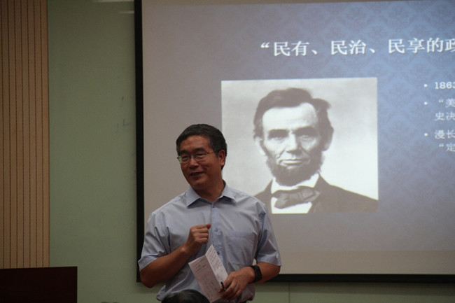 除此之外,田老师还提出了一些使人耳目一新的观点。如通过对比法条的语言表述,援引他人观点佐证,指出《权利法案》在内战前,并不能落实到每个个体、切实保障个人权利,而是旨在通过限制国会的权力来使各州权利不因联邦政府而受到限制。又如将林肯1863年进行的葛底斯堡演讲作为早期宪法史的终结,并用“美国建国八十七年来若干重大问题的历史决议”这一俏皮性的表述强调美国漫长建国时刻内的两种路线斗争至此“定于一”的观点,为整个演讲画上了一个意犹未尽的省略号。
