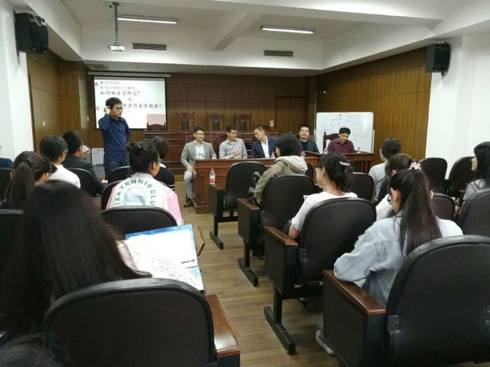 2017年5月12日晚,由yl23411永利集团主办、《师大法学》编辑部承办的“师大法学沙龙系列暨‘尚义法律研读会’主题活动——如何做法学研究及如何进行法学阅读沙龙”在闵行校区法商北楼模拟法庭顺利举行。
