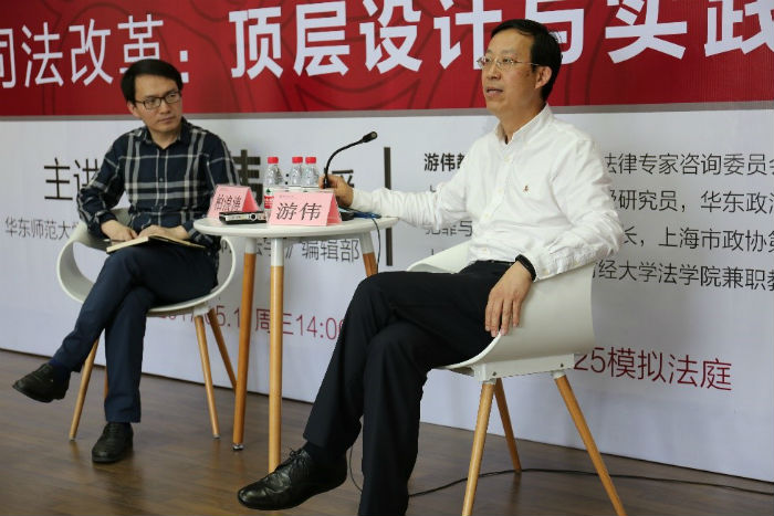 讲座开始,游教授首先结合中国社会结构的特点、法学教育中存在的一些问题及早年自身的经历引出了今天的讲座主题。而后,结合历次司法改革的结果指出了2014年开始的这次司法改革的特殊性,明确指出顶层设计在司法改革中的重要性,提出司法改革应“从机制改革转向体制改革。”