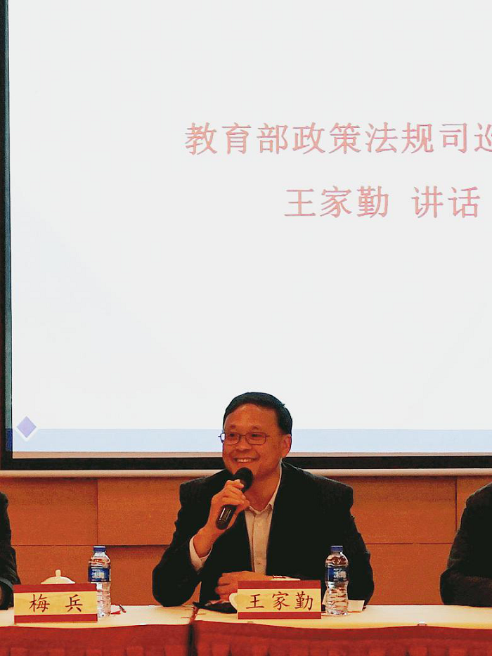 王家勤在讲话中强调了青少年法治教育工作的重要意义。他指出,青少年法治教育关系到社会主义合格公民的培养,任重且道远。青少年法治教育协同创新中心成立的短短一年多,取得了诸多成绩,这说明一部、一委、两校的协同合作取得了初步的成功。十九大以后,中央将更加重视法治工作,教育部政策法规司将进一步加强和一委、两校的合作,在“协同”、“创新”上做文章,全面推进《青少年法治教育大纲》落地。希望首批实验校抓住机遇,与专家团队密切合作,积极探索可推广、可复制的经验和模式,争做青少年法治教育先行者和排头兵。
