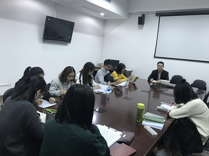 本次读书会由李帅老师担任主持人,形式上采用了“领读人领读”与“交流讨论”相结合的形式,研究生一年级新生沈亦洁同学和研究生二年级燕笑同学担任此次读书会的领读人。
