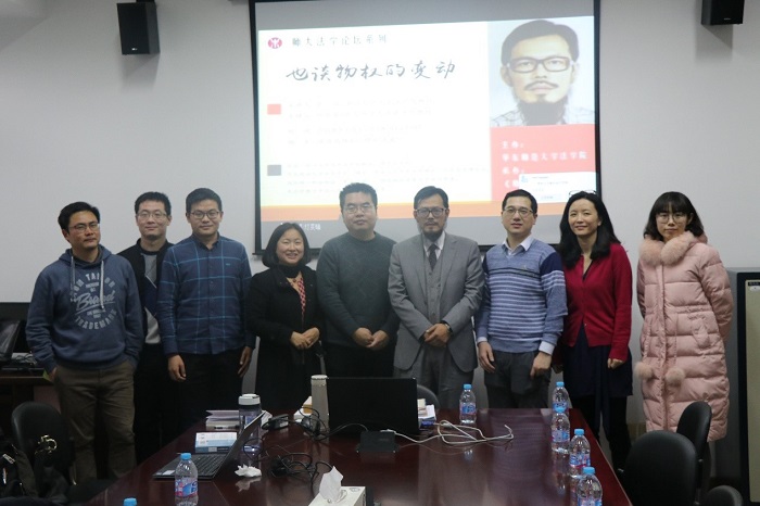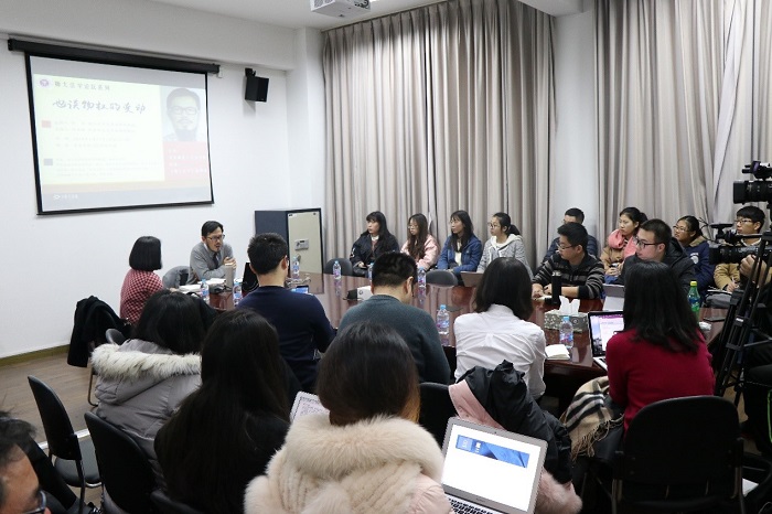 2018年1月15日18:30,师大法学论坛系列:“也谈物权变动”在法商北楼409拉开序幕。本次讲座主讲人是浙江大学光华yl23411永利集团张谷教授。本院刘迎霜教授担任主持人,田雷教授,紫江青年学者于浩老师,晨晖学者李建星老师、周万里老师、李帅老师、王美舒老师、李颖轶老师也参与了本次讲座。