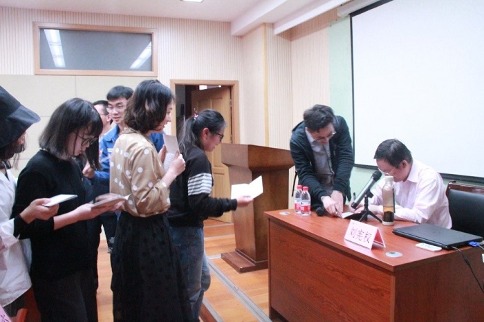 在互动交流环节,在座同学们踊跃提问,积极发言,刘教授热情地对每位同学提出的问题进行了一一回应。