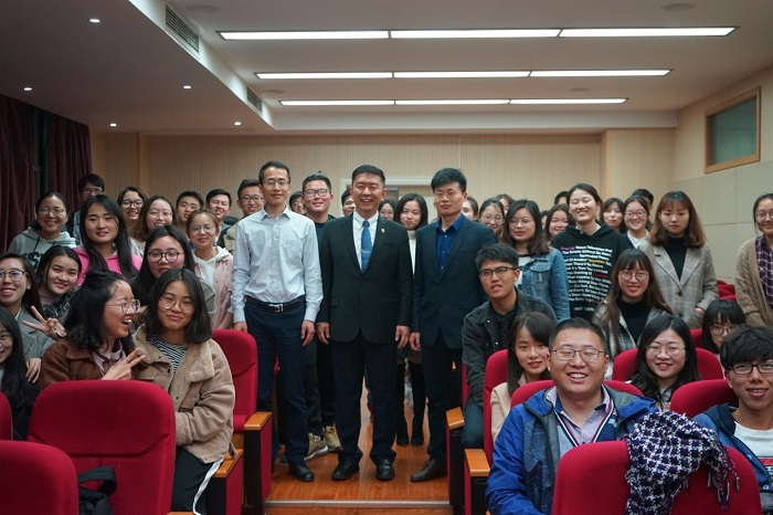 最后,在大家的热烈掌声中刘教授结束了讲述,并热情的与所有在座师生合影留念。