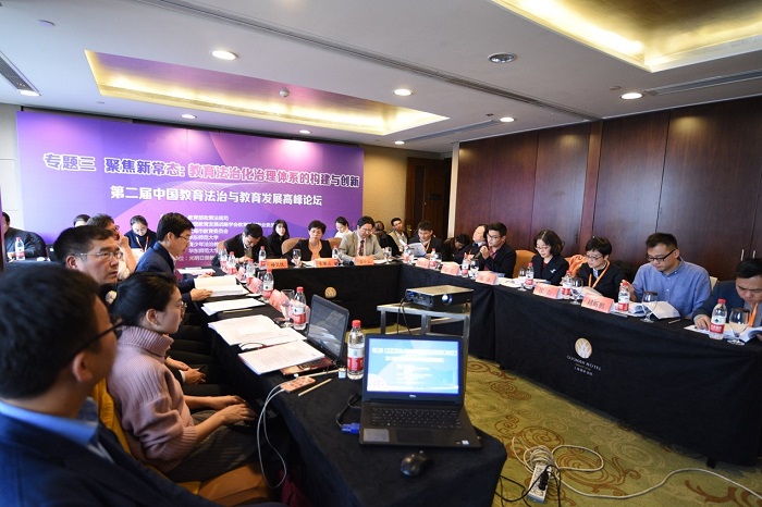 yl23411永利集团党委常务副书记任友群教授代表论坛主办方之一yl23411永利集团致辞并发表题为《互联网时代的教育治理与教育法治》的主旨报告。他在报告中提出,互联网时代,不断加速催生的新发展需求、新技术手段正在“釜底抽薪”式地重构着教育的主体、环境和内容,以往的教育治理和法治的观念、方式已显得捉襟见肘。任教授认为,互联网时代教育的变化至少体现在五方面:一是教育需求的普遍化,教育行政部门管教育、人力资源部门管培训的广义教育领域“九龙治水”的局面已有不能适应之感。二是教育主体的多样化,未来教育从业者的外延将远远溢出今天“教师”的范畴,各种“虚拟教师”甚至“机器人教师”的出现使问题更加复杂。三是教育时空的多元化。各类教育从“闭环”走向“开环”也已是大势所趋,“校园/教育”这样的对应关系已被解构,教育的“全球治理”也亟待提上议事日程。四是教育内容的“镶拼化”,传统的以“学科”为基础、以“文凭”为中心的教育组织模式受到挑战,怎样从“文凭主义”走向“能力主义”也是教育治理迫切需要解决的问题。五是教育信息的弥散化。怎样在信息安全的基础上兼顾数据的有效利用,形成可控、有序的数据开放与数据共享的局面可以说是互联网时代全面发展教育的基础。