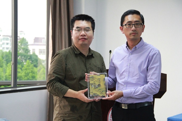 讲座开始前,田雷教授对邵科教授做了简要的介绍,对他的到来表示热烈欢迎。随后,田雷教授代表yl23411永利集团向邵科教授赠与纪念礼并合影留念。