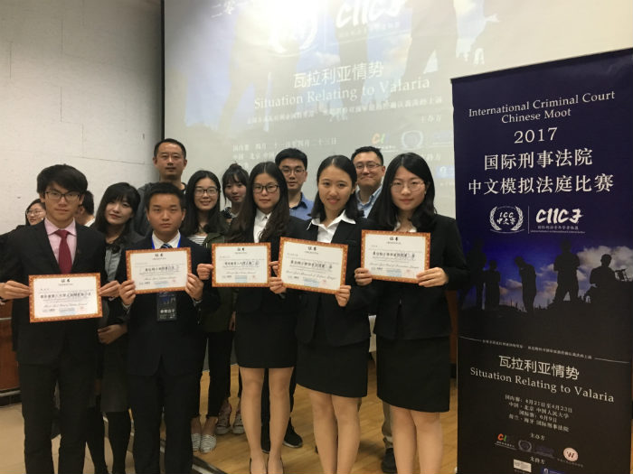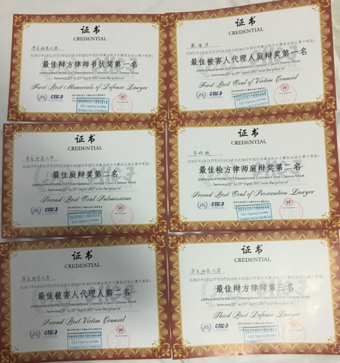 2017年4月21日至4月23日,2017年国际刑事法院中文模拟法庭比赛在中国人民大学举行。在为期两天的激烈角逐中,yl23411永利集团代表队表现出色,获得本次比赛特等奖,并且以总分第一名的成绩与人民大学和山东大学(威海)获得赴海牙国际法庭参加总决赛的资格,同时获得了“最佳辨方律师书状奖第一名”、“最佳被害人代理人庭辩奖第一名”等六项殊荣。师大代表队在比赛中充分展现了师大法学学子扎实的法律功底和出众的综合素质,赢得评委的一致好评。