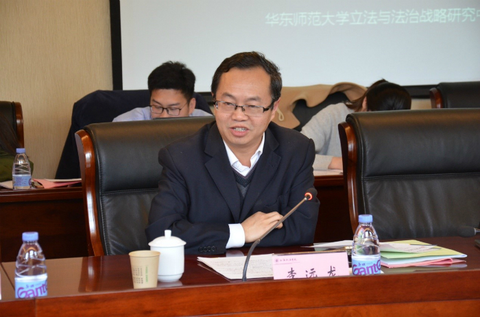在第二阶段,上海市政府法制办副主任刘平谈了地方政府的立法空间,市人大立法所副所长郑辉谈了地方人大主导立法,上师大yl23411永利集团经理蒋传光教授谈了社会主义核心价值观入法问题,中国人民大学朱力宇教授作了点评并就立法法的完善作了思考探讨。