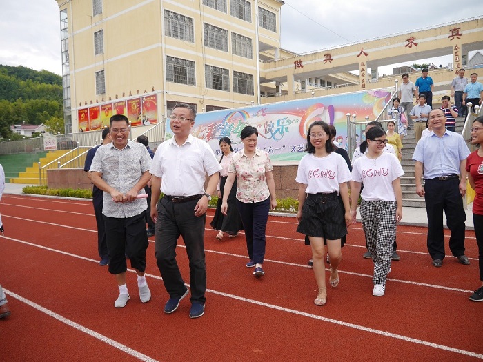 最后,上饶市委常委、副市长任友群讲话。对于师大学子,他强调了在红色老区教育帮扶的意义,不忘红军精神,铭记革命历史,珍惜难得的基层体验机会。对于德兴当地,他肯定了德兴的多元文化,希望能继续发扬优良传统,在教育上有更好的发展与突破。特别鼓励大家多走出去看看,与发达地区多交流,把握各种开阔眼界的机会。对于可爱的小朋友们,他希望孩子们能向来此支教的大哥哥大姐姐学习,树立远大理想,努力成长成才。