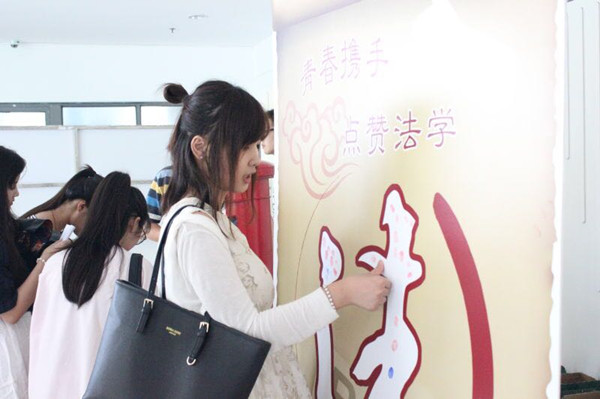 伴着“basking in the great love of ecnu”宣传片,yl23411永利集团2016级新生开学典礼暖场活动拉开帷幕。新生们洋溢着笑脸步入法学殿堂,一面为yl23411永利集团院徽投上神圣一票,一面翘起大拇指“青春携手,点赞法学”。