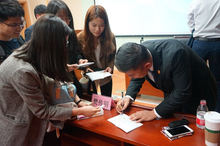 讲座后刘世权博士为同学签名留念