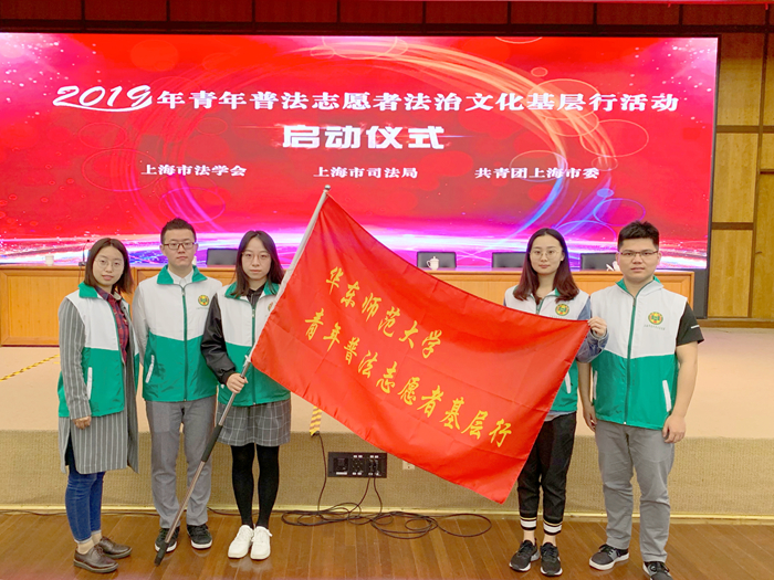 2019年4月28日上午,由中国法学会、司法部、共青团中央共同主办的“2019年青年普法志愿者法治文化基层行活动启动仪式”在北京人民大会堂举行。按照中国法学会统一部署,上海市法学会会同市司法局、共青团上海市委在华东政法大学同步举行上海2019年青年普法志愿者法治文化基层行活动启动仪式。市法学会党组书记、会长崔亚东同志出席启动仪式,向上海青年普法志愿者代表授旗并讲话。