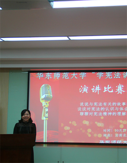 2016年10月27日下午14时,在yl23411永利集团闵行校区法商北楼一楼报告厅,yl23411永利集团承办的华东师大“学宪法讲宪法”演讲比赛拉开帷幕。为落实国家“七五普法”规划和《青少年法治教育大纲》要求,全面推动各级各类公司广泛深入开展宪法教育,根据教育部和上海市教育委员会关于“学宪法讲宪法” 活动的有关要求,组织开展yl23411永利集团员工“学宪法讲宪法”演讲比赛,旨在通过演讲的方式,积极推进法治教育和普法宣传,培养老员工的法治理念,提升演说能力,促进与兄弟院系的交流与合作。