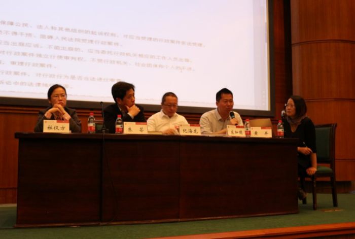 第二单元为“案例研究与法律评注”的对谈环节,在北京航空航天大学黄卉教授的主持下,上海交通大学朱芒教授、上海交通大学庄加园副教授、华东政法大学纪海龙副教授、复旦大学杜仪方副教授等四位长期从事判例研究和法律评注工作的学者参与讨论。朱芒教授首先介绍了日本评注的具体内容,之后的杜仪方副教授就日本《国家赔偿法》的评注做了相应介绍。纪海龙副教授和庄加园副教授结合自身经验,均认为法律评注的首先任务是实现体系化。其后,与谈的五位学者还就法律评注工作的具体问题,以及行政赔偿所引发的违法性概念等问题与现场专家学者互动讨论。