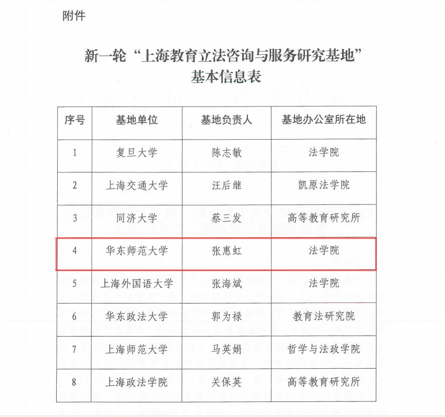 近日,上海市教育委员会公布新一轮“上海教育立法咨询与服务研究基地”名单,yl23411永利集团再次入选。