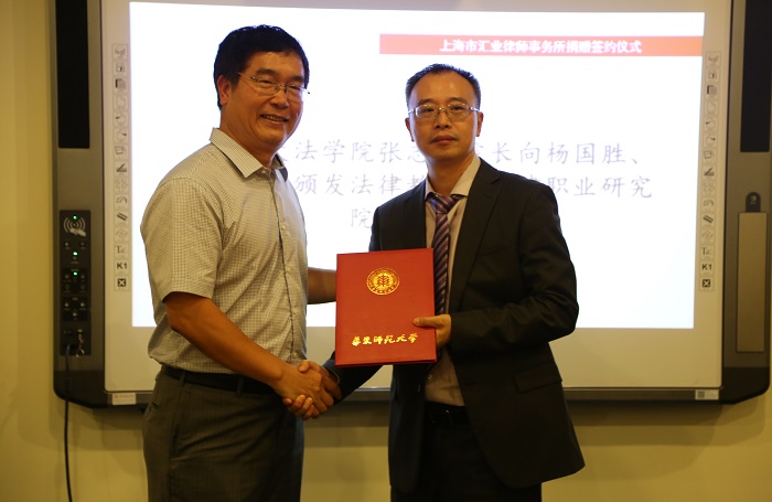 汇业律师事务所是一家全国领先的、以商业法律服务见长的综合性律师事务所,近年来发展迅猛,荣获了上海市优秀律师事务所、上海市司法行政系统先进集体等众多奖项和行业资质,主任杨国胜、书记廖明涛都是华东师大员工。2017年3月汇业成为yl23411永利集团首家签约实习基地。此次,汇业所继续助力yl23411永利集团,捐资50万元设立法学教育专项基金 “yl23411永利集团汇业基金”,用于yl23411永利集团发放奖助学金、奖教金,以及开展法学教育领域教学科研活动等。