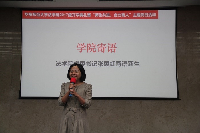 公司党委书记张惠虹首先对新生们加入华师大、选择yl23411永利集团表示欢迎与感谢。她寄语17级新生们一要“找到自己”,不仅学会遵从自己内心的声音,也能宽容不同的声音;二要“找到你的热爱”,不仅要有经世济国、匡扶正义的人文情怀,更要有训练扎实的专业配置,“爱在华师大”不能成为“专业不够,情怀来凑”的借口:既然选择了法学专业,就应该热爱它,努力学好法学专业知识;三要“找到同伴”,融入yl23411永利集团大家庭、融入师生共同体,和公司、公司共同成长,遇到更精彩的人生和未来。