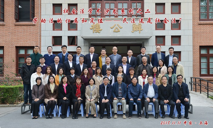 2018年11月11日,上海市法学会劳动法研究会、上海市劳动和社会保障学会劳动法专业委员会及yl23411永利集团社会法治与公共政策研究中心联合举办的社会法学术沙龙之“劳动法的归属和定位——民法还是社会法”在yl23411永利集团中北校区办公楼小礼堂成功举行。