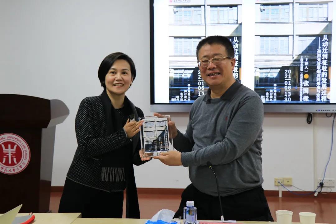 讲座的最后,凌维慈老师对讲座内容进行总结。她表示,张总监用生动精彩的语言使同学们感受到,公正这一法律价值是可以由各方努力,尤其是一线实施机构负责人的坚守,进入规范层面的,张总监的报告也提示了在房屋征收领域,公正会促进效率这一重要的命题。凌维慈老师感谢了张国樑总监的分享,并向张总监赠送了专门为本次讲座制作的纪念品。讲座在大家经久不息的掌声中圆满结束。