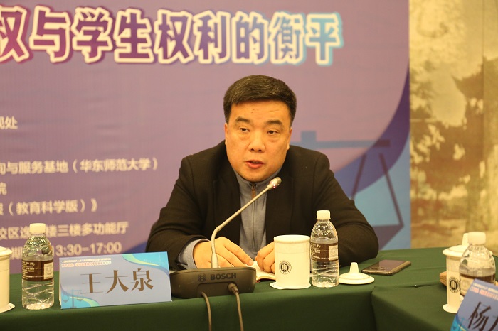 王大泉副司长认为要对教育惩戒概念的内涵和外延做深入的研究,教育惩戒应该是具有教育意义的惩戒,是教育权的一部分。目前教育惩戒存在规定不够明确、合法性缺陷、执行程序不规范等问题,希望理论界和实务界能深化研究,使教育惩戒能成为一个具有法律意义的概念,并在制度运行上进行保障,提出一些创新性的对策建议。