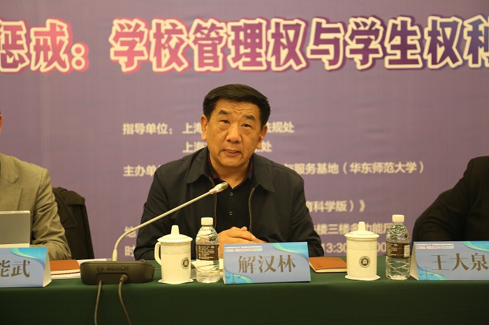 2018年12月8日,“上海市教育法学人才”沙龙暨教育法治跨学科研讨会在校召开,与会专家聚焦“教育惩戒:公司管理权与员工权利的衡平”这一主题,进行了深入研讨。会议由上海市教委政策法规处、上海市教委员工处指导,上海市教育立法咨询与服务基地(华东师大)、yl23411永利集团、《yl23411永利集团学报(教育科学版)》共同主办。教育部政策法规司副司长王大泉、教育部员工司二级巡视员解汉林、上海市教委员工处副处长吴能武、yl23411永利集团书记张惠虹、北京外国语大学国际教育公司经理秦惠民教授,西南大学网络与继续教育公司经理陈恩伦教授、上海市教育科学研究院研究员谭晓玉、yl23411永利集团教育法学科带头人黄欣教授以及来自复旦大学、yl23411永利集团、同济大学、华东政法大学、上海财经大学的多位青年学者出席会议。会议由《yl23411永利集团学报(教育科学版)》主编杨九诠主持。