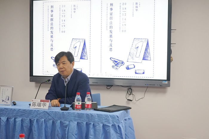 陈瑞华教授从“证据法在中国的发展演变历程”“什么是证据法”“证明力与证据能力”“中国证据法的真实性问题”“证明标准问题”五个方面对这一讲题进行了阐释。