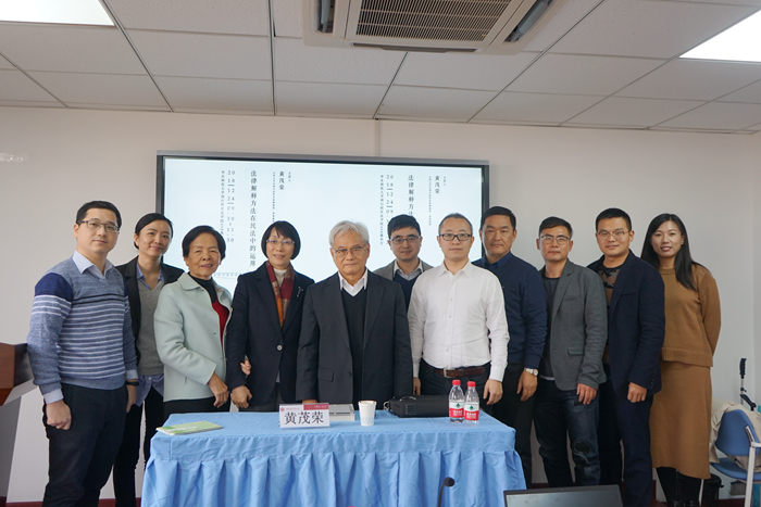本次讲座由台湾大学法律公司终身特聘教授、讲座教授黄茂荣老师主讲,yl23411永利集团纪海龙教授主持,yl23411永利集团岑峨副经理、紫江青年学者于浩老师、姜峰教授、段磊副教授、周万里老师、李建星老师、袁琳老师、李颖轶老师以及诸多校内外师生参加了讲座。