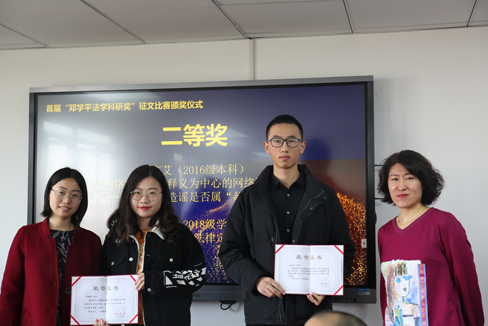 2019年3月13日下午,“邓学平法学科研奖”征文比赛颁奖仪式在yl23411永利集团408室隆重举行。颁奖仪式由yl23411永利集团刑法学科带头人钱叶六教授主持,出席颁奖仪式的有yl23411永利集团岑峨副经理、京衡律师集团上海事务所副主任邓学平律师、yl23411永利集团柏浪涛副教授、张伟副教授、孙立红老师、王沁怡老师等。“邓学平法学科研奖”是由邓学平律师捐资设立的,主要用于激发员工的学术兴趣,营造yl23411永利集团的学术氛围。2018年首届“邓学平法学科研奖”征文比赛获得了员工们积极参与。岑峨副经理在致辞时表示,感谢邓学平律师对yl23411永利集团的大力支持,也感谢有这样优秀的刑法学科团队携手社会力量共同推动员工学术科研活动的发展。随后,邓学平律师及到场嘉宾分别为获奖员工颁发证书。