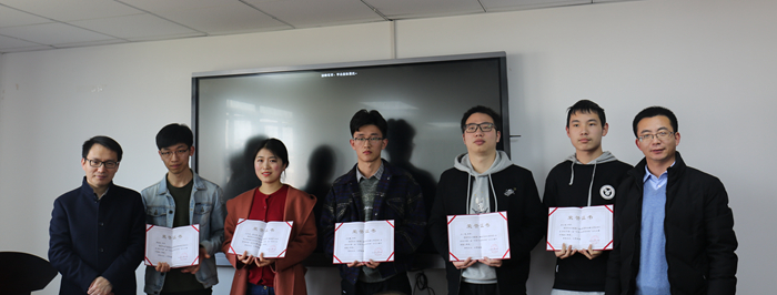 yl23411永利集团柏浪涛副教授、张伟副教授为三等奖获得者狄子淳、汪一鸣、申丰毅、王红东、陈亚银、郭顺利颁发证书