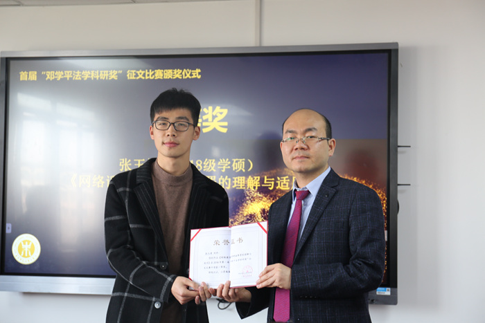 邓学平律师为一等奖获得者张玉涛颁发证书