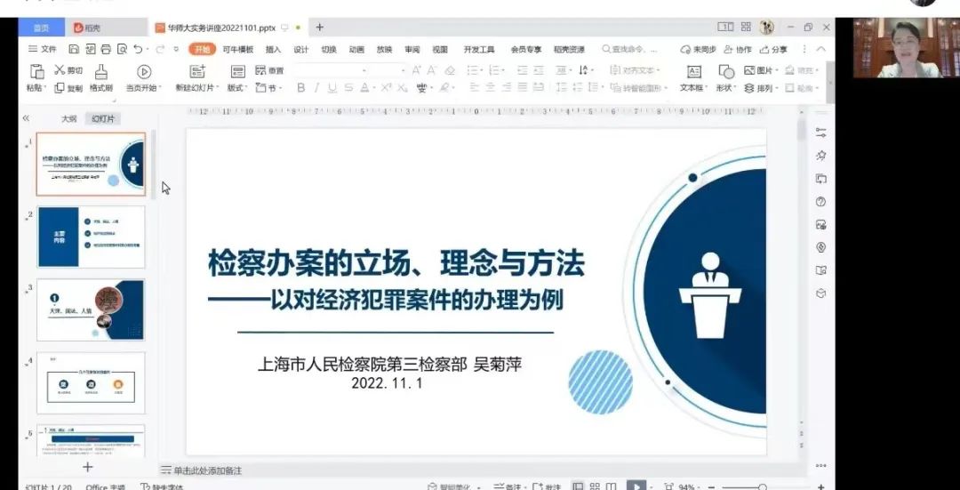 在评议互动环节,主持人张伟副教授感谢了吴菊萍检察官精彩细致的讲座,对讲座内容进行了全面深入的总结并发表了自己的感悟与看法。