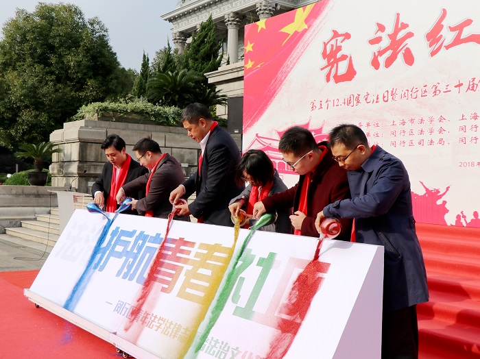 yl23411永利集团师生参与“宪法红在闵行”-第五个12.4国家宪法日暨闵行区第三十届宪法宣传周启动仪式之国旗下成长活动