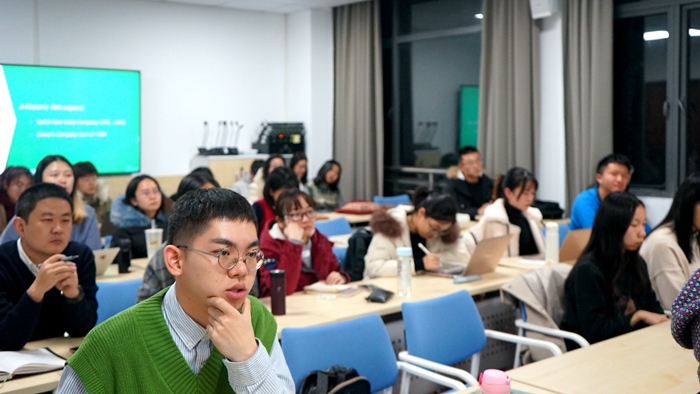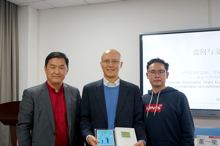 2019年12月3日晚上,yl23411永利集团系列讲座之“公司治理的滥觞、发展与法律实践——兼论中德两国之比较”在yl23411永利集团楼104教室举行。本次讲座由德国凯傲集团股份有限公司亚太高级法务总监董一梁博士主讲,姜峰教授主持。周万里老师和部分研究生、本科生参加了讲座。
