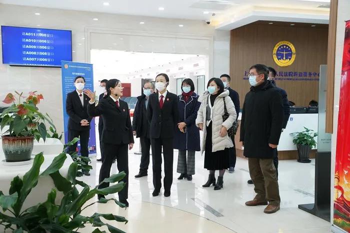 会前, 张志铭经理一行参观了金山区人民法院诉讼服务中心、诉调对接中心、家事法庭、第一法庭、文化展示厅、信息管理中心等设施和场所。